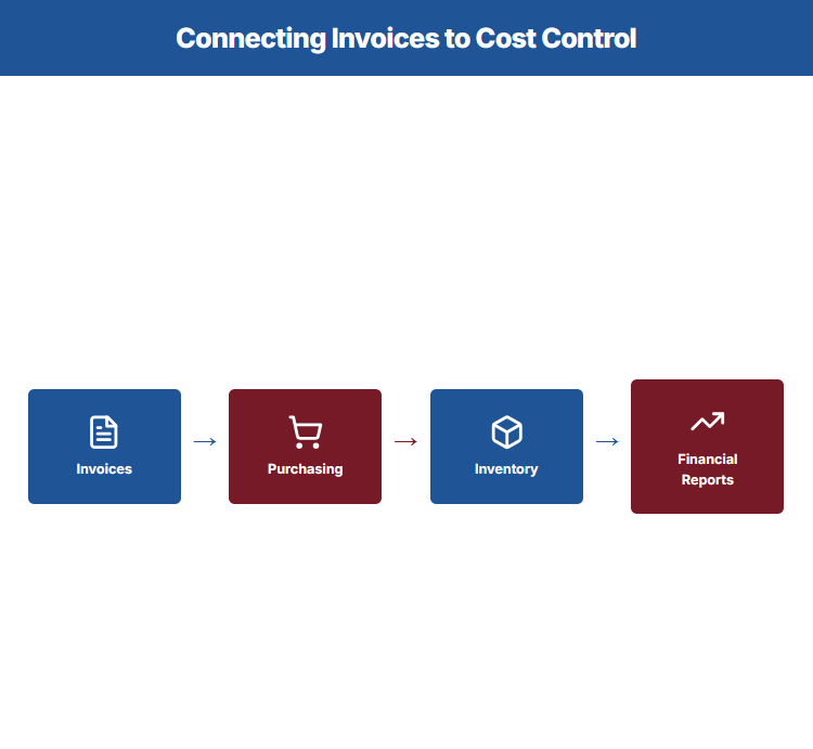 Restaurant cost control software connects invoice data with purchasing, inventory, and financial reporting, allowing operators to understand how spending impacts food cost and profitability.