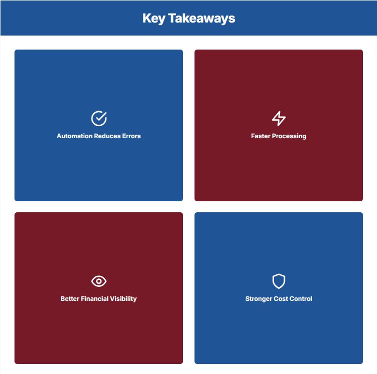 Invoice automation eliminates manual data entry, reduces errors, and ensures that financial records reflect real operational activity.