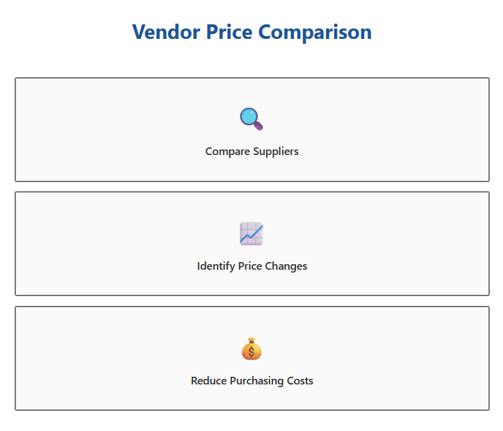 Vendor price comparison allows operators to review supplier pricing side by side, making it easier to identify cost-saving opportunities and choose the best vendor for each product.
