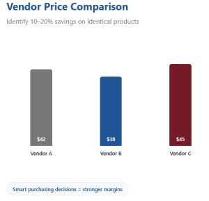 - Independent operators using price comparison save an average of 8–12% on core ingredients.